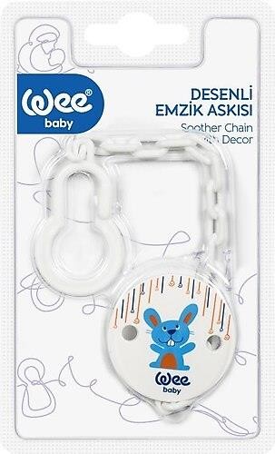 La sucette Wee Baby, accompagnée de sa chaîne pour les bébés de 0 à 6 mois, nécessite une vérification de l'embout avant chaque utilisation. Assurez-vous qu'il n'y ait aucune déformation avant de la donner au bébé.