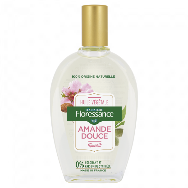 Floressance® a sélectionné l'huile amande douce, très fine et limpide, pour sa teneur élevée en vitamine E et en acides gras insaturés. Elle respecte les peaux délicates qu'elle assouplit.