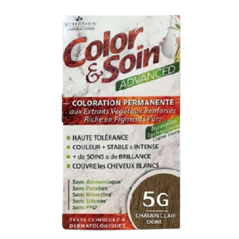 Découvrez la coloration 3 CHENES COLOR & SOIN ADVANCED 5G Châtain Clair Doré , une formule innovante qui allie couleur éclatante et soin capillaire. Offrez à vos cheveux une teinte châtain clair doré lumineuse tout en les nourrissant. Transformez votre look tout en préservant la santé de vos cheveux !