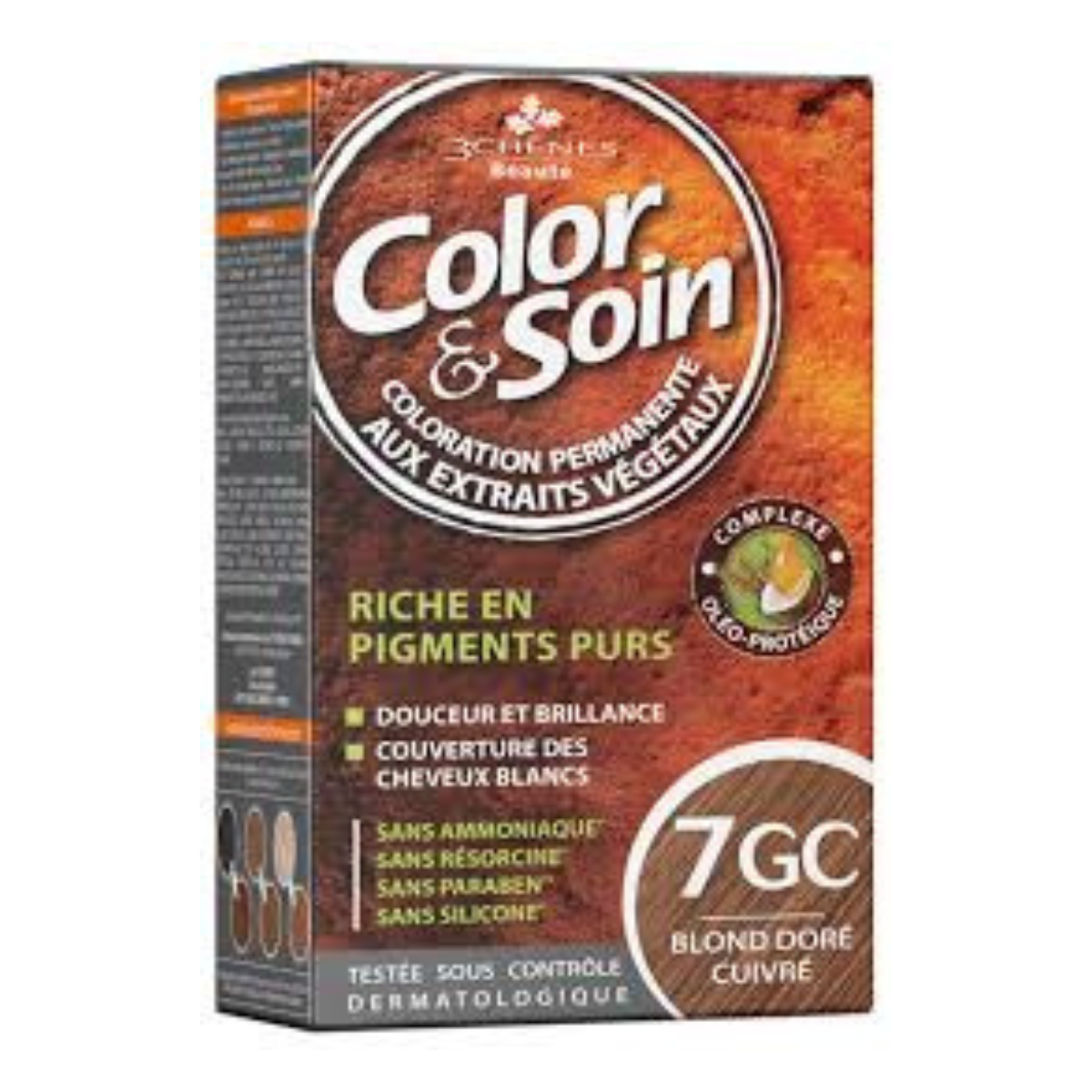 Découvrez la coloration 3 CHENES COLOR & SOIN en blond doré cuivré 7GC , une solution idéale pour sublimer vos cheveux tout en prenant soin d'eux. Cette coloration cheveux offre une teinte éclatante et chaleureuse, tout en intégrant des actifs de soin capillaire pour des cheveux doux et brillants. Transformez