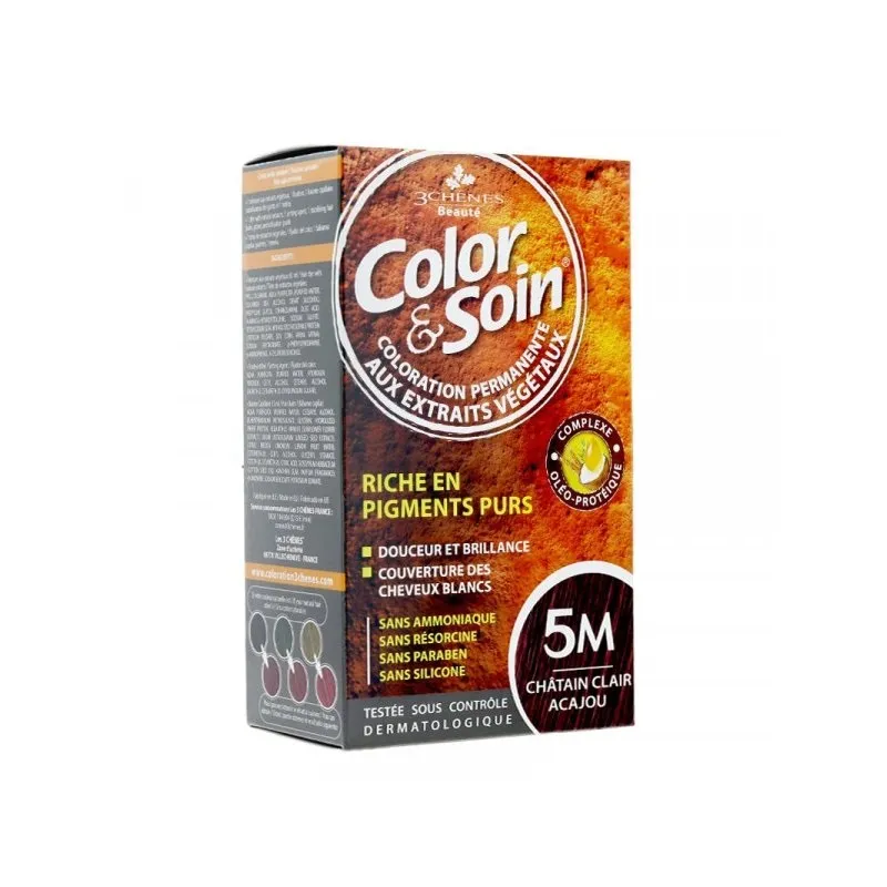 3 CHENES COLOR & SOIN COLORATION CHATAIN CLAIR 5N offre une coloration cheveux de qualité, alliant teinte châtain clair et soin capillaire. Formulée pour nourrir et protéger vos cheveux, cette coloration garantit une couleur éclatante et durable tout en préservant la santé de vos cheveux. Transformez votre look avec cette