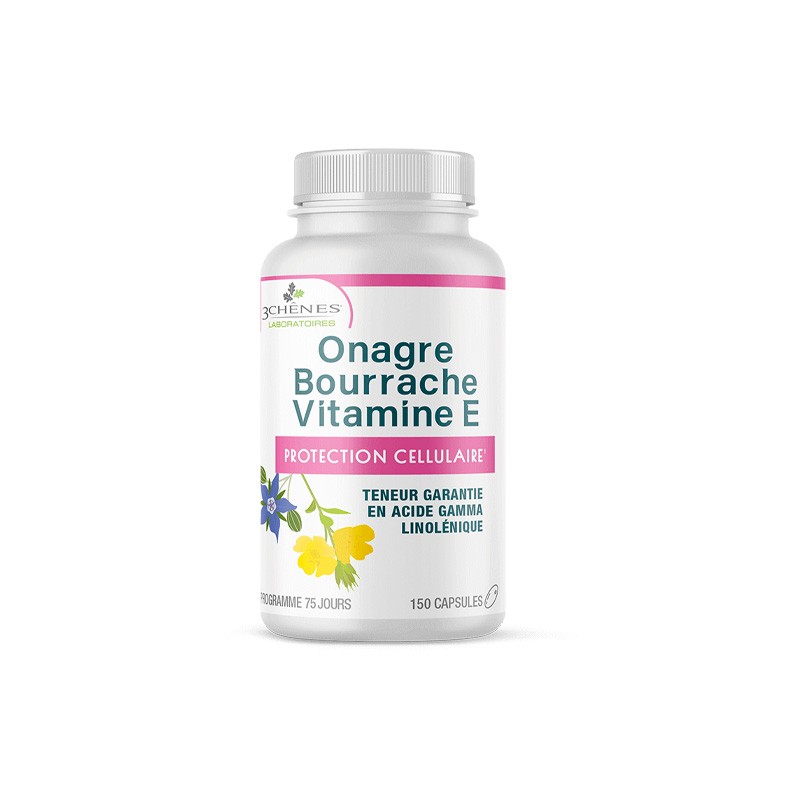 3 CHENES ONAGRE BOURRACHE VITAMINE E 150 CAPSULES