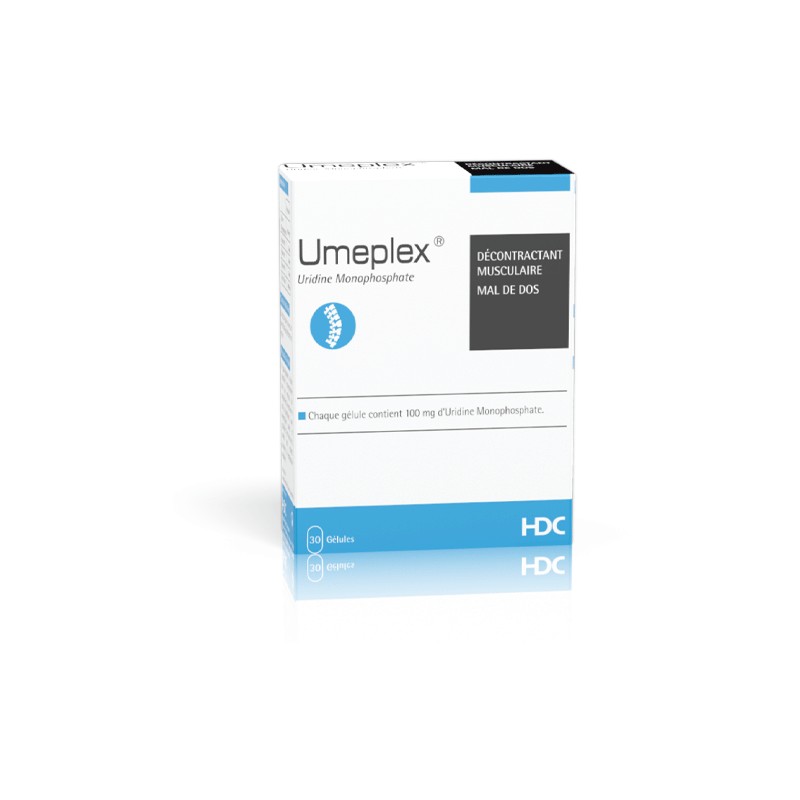 Umeplex® est un complément alimentaire à base d’Uridine Monophosphate. Il est utilisé comme adjuvant pour la prise en charge des dorsalgies. L’uridine monophosphate combinée à la Vit B12 et la Vit B9 contribue au bon fonctionnement musculaire d'où son action sur les douleurs radiculaires. Dédiée pour les personnes âgées et
