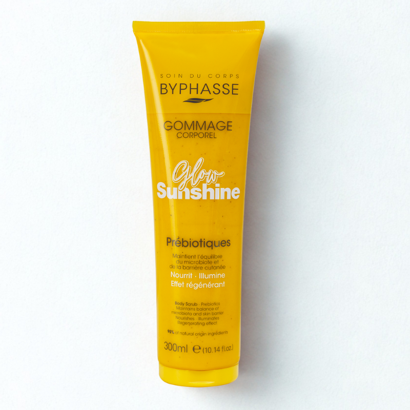 Découvrez le BYPHASSE GOMMAGE CORPOREL GLOW SUNSHINE 300ML , un exfoliant peau idéal pour un teint éclatant. Formulé pour éliminer les cellules mortes, ce gommage corporel revitalise et adoucit votre peau. Offrez-vous une expérience sensorielle unique et révélez l'éclat naturel de votre corps avec BYPHASSE Glow.