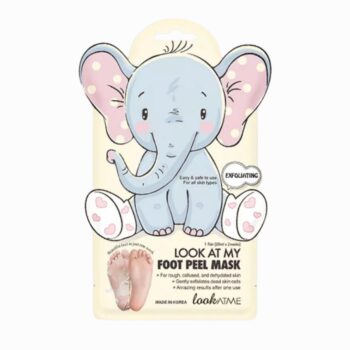 Le masque exfoliant pour les pieds « Look at Me Foot Peel Mask (Elephant) » est un soin coréen exfoliant et hydratant pour les pieds rugueux, fendillés et secs. Ce produit à usage unique se présente sous la forme d'une paire de chaussettes remplies d'une essence exfoliante et nourrissante.