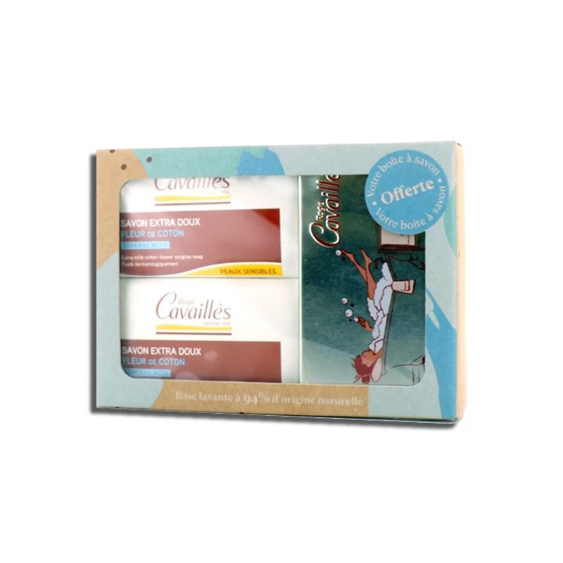 ROGE CAVAILLES PACK de 2 SAVON EXTRA DOUX FLEUR DE COTON 250gr+BOITE A SAVON (OFFERTE)