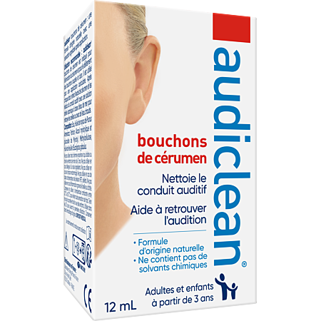 Audiclean bouchons de cérumen ramollit et aide à déliter les bouchons de cérumen. En cas de bouchons durs, audiclean bouchons de cérumen facilite l'extraction des bouchons.