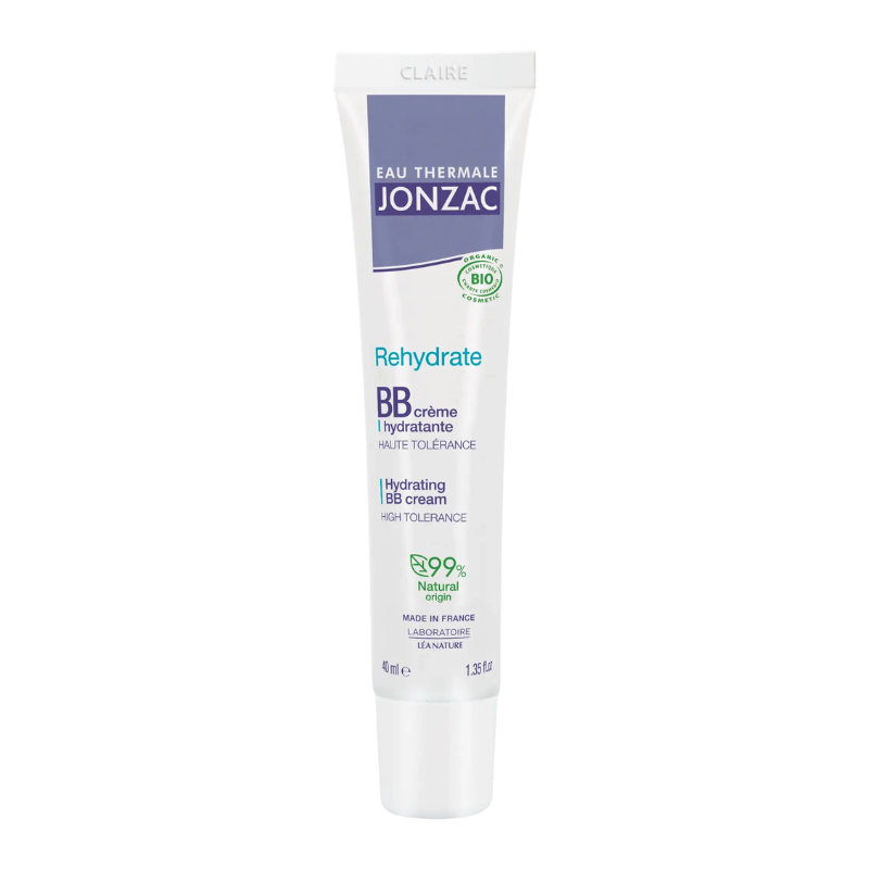 Eau Thermale Jonzac Rehydrate BB Crème Bio 40ml – Teinte : Claire est un soin teinté haute tolérance, enrichi en eau thermale de Jonzac, glycérine et acide hyaluronique. Cette BB crème 5en1 hydrate intensément, unifie, illumine, lisse et protège la peau immédiatement et en un seul geste.