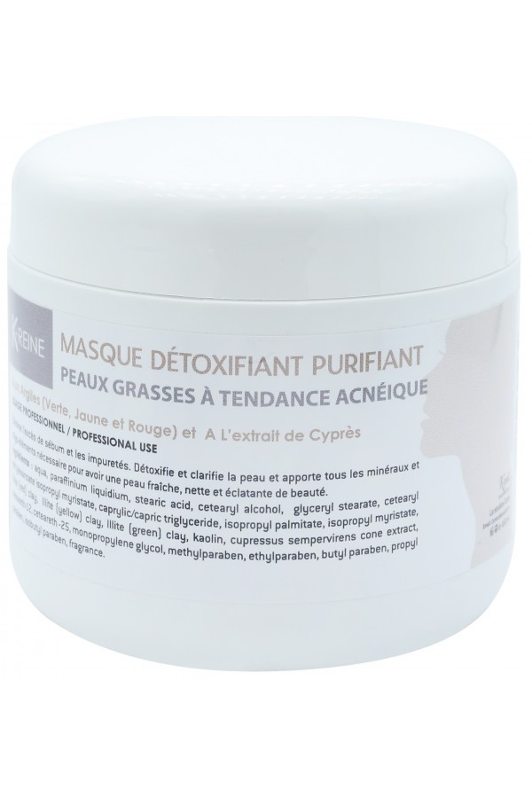 MASQUE DÉTOXIFIANT PURIFIANT PEAUX GRASSES À TENDANCE ACNÉIQUE Aux Argiles (Verte, Jaune et Rouge) et A L'extrait de Cyprès