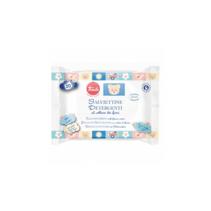 Toujours nécessaires près de la table à langer et dans le sac de voyage, les lingettes humides Trudi Baby Care, grâce à leur tissu micro-éponge nid d'abeille particulier, caressent doucement les fesses de bébé à chaque changement de couche, laissant une couche d'émulsion légère sur la peau à base de
