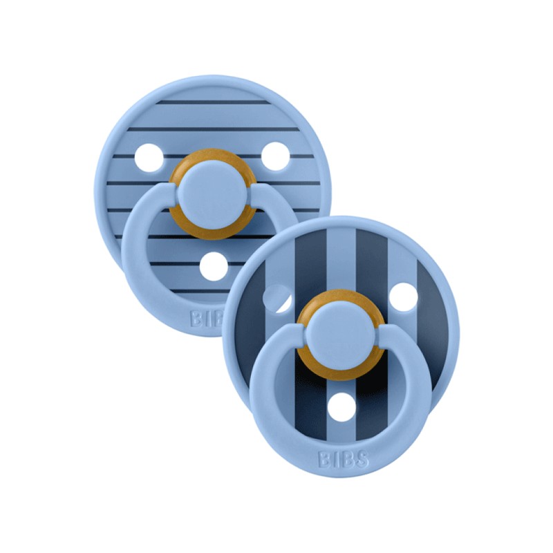 BIBS Color avec tête de tétine anatomique possède le fameux bouclier rond, tandis que la tétine elle-même est de forme anatomique. La tétine s'adapte bien à la bouche de l'enfant et protège la mâchoire, les gencives et les dents. La tétine est composée à 100 % de latex/caoutchouc naturel, ce