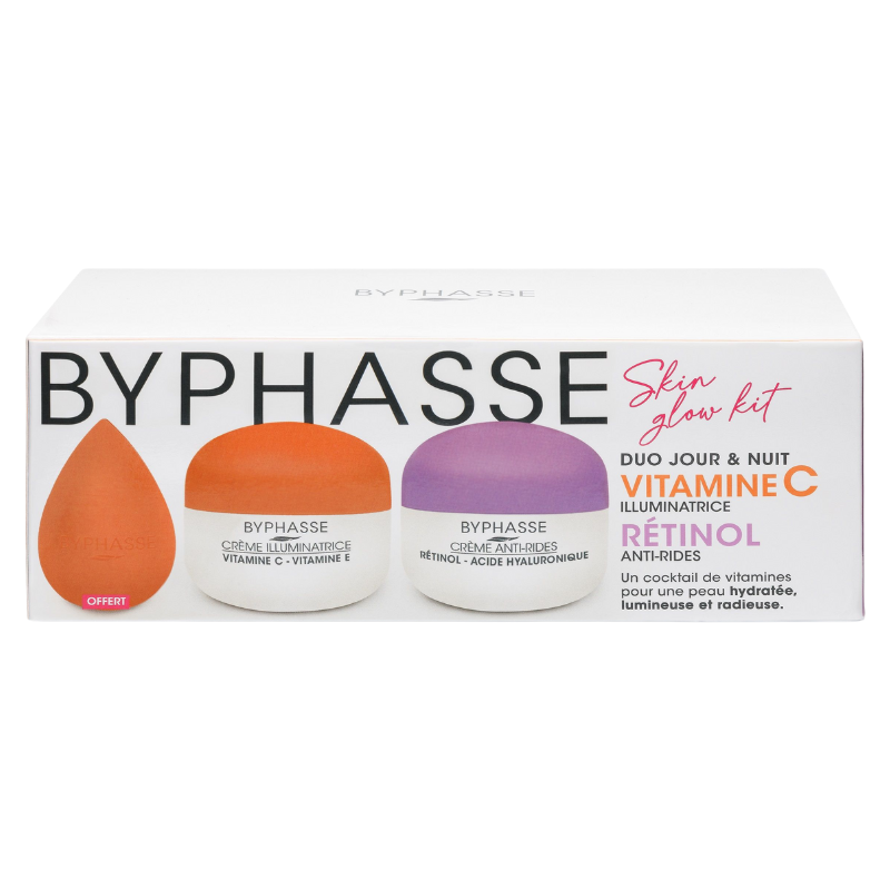 BYPHASSE KIT SKIN GLOW CREMES VITAMINE C 50ML ET RETINOL 50ML+BEAUTY BLENDER (OFFERT)