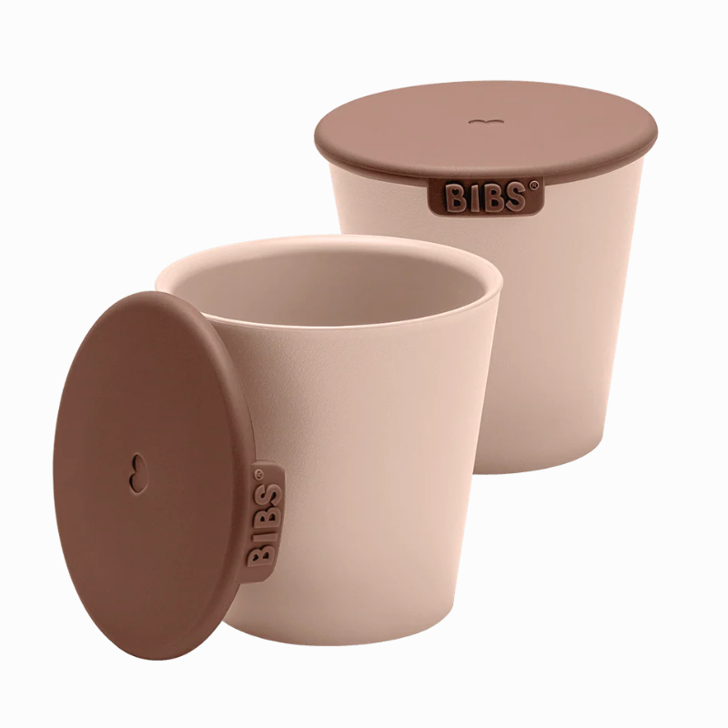 Set de gobelets - Blush Le Set de Gobelets BIBS se compose de deux gobelets ouverts avec des couvercles complémentaires, ce qui facilite l'utilisation des gobelets en déplacement avec des collations ou d'autres rafraîchissements pour vous et votre enfant.
