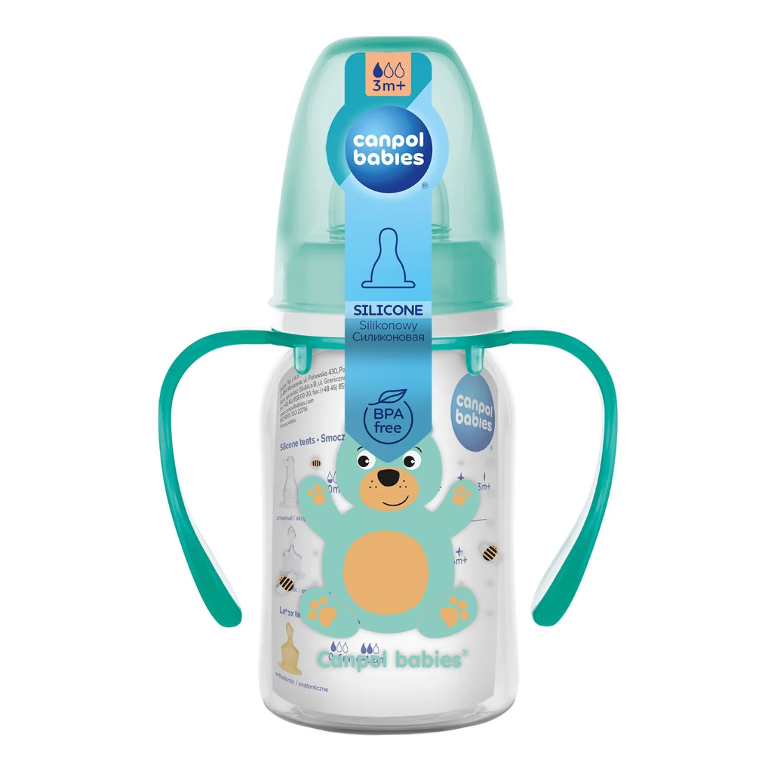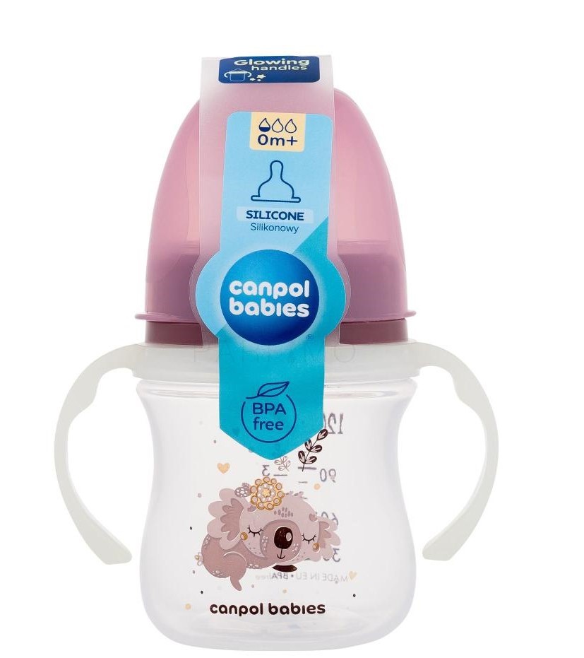Le biberon à col étroit avec anses 120 ml de Canpol babies est léger, résistant et complètement transparent. Une balance claire et précise vous permet de contrôler la quantité mangée par votre enfant. La tétine est fabriquée en silicone souple et sûr, ce qui la rend insipide et inodore, ce