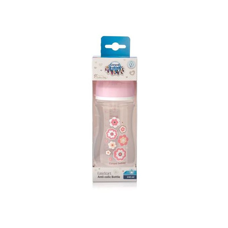 Canpol Biberon anti-colique - 240 ml - rose fleurs - tétine 3m+