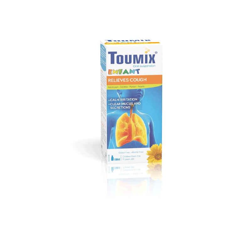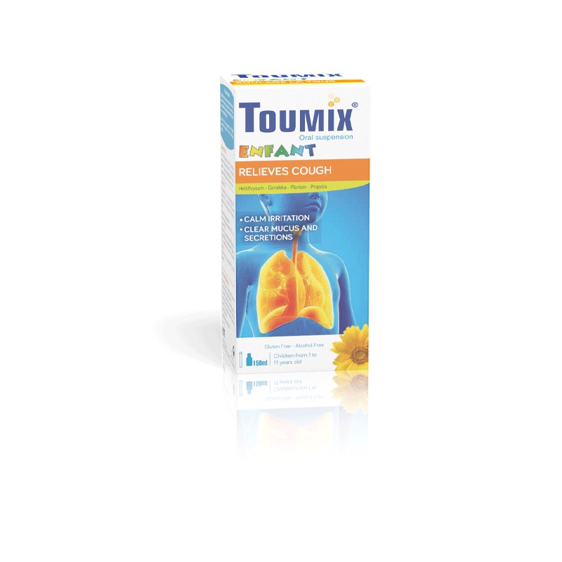 TOUMIX enfant est un support et apaisant en cas de toux sèche. TOUMIX enfant soulage les expectorations et aide à adoucir les troubles respiratoires comme la toux grasse Il contient des résines naturelles (feuilles de plantain, de grindelia et d’helichrysum) qui aident à déposer un film protecteur sur les muqueuses