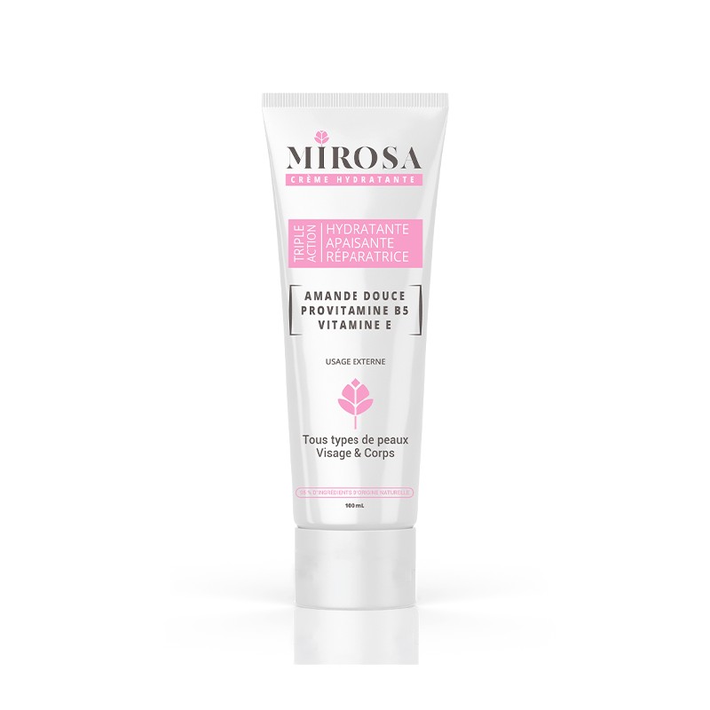 Crème hydratante MIROSA, douce et riche, efficace dans le traitement de la sécheresse cutanée, elle pénètre immédiatement sans fini gras. Cette crème prévient la déshydratation, apaise et protège la peau de la pollution et contribue à l’entretien de la barrière cutanée.