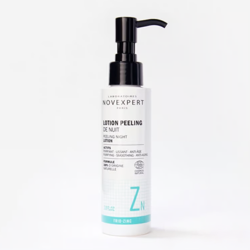 Novexpert Trio-Zinc Lotion Peeling de Nuit 115 ml est un soin cosmétique "coup de balai" cutané. Elle offre une action 3en1 : lissant, purifiant et anti-âge. Elle convient aux jeunes adultes.