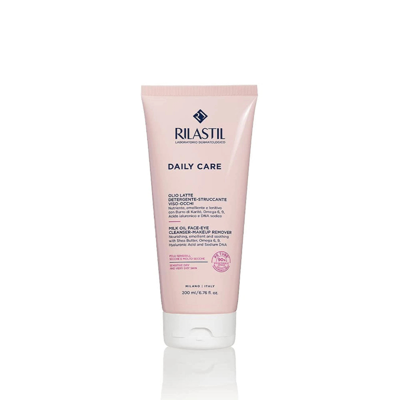 RILASTIL Daily Care Lait Nettoyant Visage Lait nettoyant délicat et doux, idéal pour les peaux sensibles, sèches et très sèches, avec une action nourrissante.