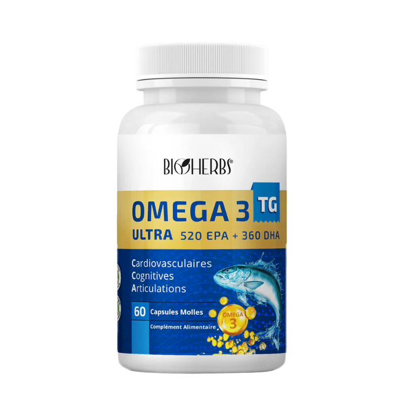 Description : Découvrez Omega 3 Ultra TG, un complément alimentaire à base d’oméga 3 hautement concentré, formulé pour une absorption optimale et disponible en Tunisie. Grâce à sa forme Triglycéride (TG), plus proche de la forme naturelle des oméga 3, cette formule avancée apporte 88 % d’EPA et DHA combinés, parmi les concentrations les plus élevées du marché tunisien. Les oméga 3 sont des acides gras polyinsaturés essentiels, indispensables au bon fonctionnement de l’organisme. Omega 3 Ultra TG fournit un oméga 3 de qualité pharmaceutique, riche en 52 % d’acide eicosapentaénoïque (EPA) et 36 % d’acide docosahexaénoïque (DHA), contribuant à une meilleure biodisponibilité et à une assimilation efficace par le corps. L’EPA et le DHA jouent un rôle fondamental dans le maintien de la santé cardiovasculaire, le métabolisme des lipides, la régulation de la tension artérielle et le bon fonctionnement du cerveau. Omega 3 Ultra TG aide également à soutenir la récupération musculaire, la santé des articulations, la qualité de la peau, et participe à la protection contre l’inflammation et le vieillissement prématuré. Les Acides Gras Oméga 3 : Essentiels pour votre Organisme Contrairement aux acides gras saturés et gras trans présents dans les graisses animales, les matières grasses industrielles et l’huile de palme, les acides gras polyinsaturés oméga 3 sont des lipides essentiels que notre organisme humain ne peut pas synthétiser. Ces nutriments de longue chaîne avec multiples doubles liaisons jouent un rôle crucial dans la fluidité membranaire et la protection cardiovasculaire. Les poissons gras comme le maquereau, le hareng, les sardines, le thon, la truite et les anchois des mers froides sont naturellement riches en EPA et DHA. Notre formule ultra concentrée en gélules extrait et concentre ces acides gras essentiels pour vous offrir un apport optimal sans les risques d’oxydation, de rancissement ou de contamination par les métaux lourds. Bienfaits : Notre complément Oméga 3 ultra en gélules offre des bénéfices scientifiquement prouvés : Santé cardiovasculaire optimale Les oméga 3 EPA et DHA contribuent à une fonction cardiaque normale, réduisent les maladies cardiovasculaires, l’athérosclérose, le risque d’infarctus et maintiennent une pression sanguine équilibrée pour un système cardio vasculaire en santé Soutien au cerveau et aux fonctions cognitives Le DHA est un constituant majeur des neurones et contribue au maintien d’une fonction cérébrale normale, améliore la mémoire et la concentration, protège contre la maladie d’Alzheimer Réduction de l’inflammation : Action anti inflammatoire puissante grâce à la concentration élevée en EPA qui favorise la synthèse de prostaglandines anti-inflammatoires et réduit les processus inflammatoires chroniques Soutien à la santé mentale et émotionnelle Les oméga 3 favorisent l’équilibre hormonal, soutiennent le système nerveux et réduisent le stress Protection de la santé oculaire Le DHA est essentiel pour la rétine et contribue au maintien d’une vision normale Renforcement du système immunitaire Modulation des réponses immunitaires et soutien du système immunitaire, bénéfique dans la maladie de Crohn Gestion du cholestérol et des lipides Réduction du mauvais cholestérol LDL, augmentation du bon cholestérol HDL, diminution des triglycérides et du taux de cholestérol total