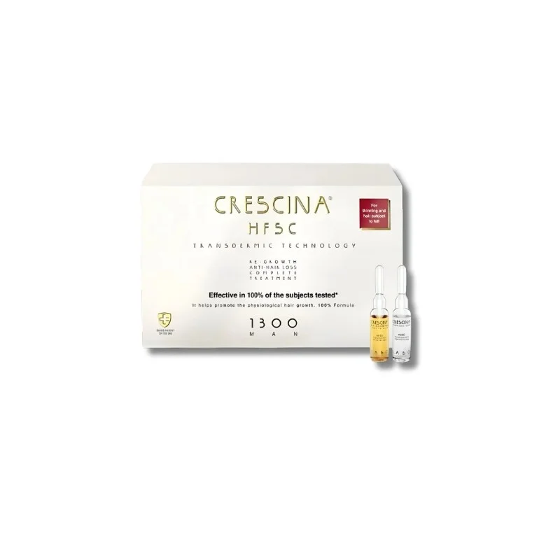 • La boîte contient 10 flacons de Crescina Transdermic Re-Growth HFSC et 10 flacons de Crescina Transdermic Anti-Hair Loss, permettant un traitement complet d’un mois.