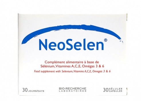 Description Sélénium, vitamines A, C, E, Omégas 3 et 6. Anti-oxydant, anti-radicallaire. Complément alimentaire. NeoSelen est un supplément nutritionnel d’antioxydants (sélénium, vitamines A, C, E), riche en Oméga 3 et Oméga 6. Bien connu pour ses propriétés antioxydantes, de nombreuses études cliniques ont prouvé l’efficacité de la combinaison de sélénium organique avec des vitamines A, C et E dans la protection des différents systèmes du corps contre le vieillissement cellulaire des tissus (articulations, des vaisseaux et la peau). De plus, les Omega 3 et Omega 6 exercent une action complémentaire, tous deux étant indispensables au bien-être de l’organisme. NeoSelen représente une nouvelle génération d’anti-oxydants. Ainsi, les extraits de poisson (oméga 3) permettent de renforcer les effets positifs du sélénium et des vitamines A, C et E dans leur rôle de protection des systèmes cardiovasculaire, articulaire et cérébral. Quant aux oméga-6, d’origine végétale (bourrache et onagre), ils renforcent l’action protectrice du sélénium et des vitamines A, C et E vis à vis de la fonction cutanée et aident à la protection contre le vieillissement prématuré des cellules. Cette combinaison synergique est le fruit des études les plus récentes sur l’alimentation et la santé. NeoSelen est ainsi tout particulièrement indiqué dans la lutte contre les effets nocifs et les excès de la vie moderne connus pour induire le vieillissement prématuré, tels que: – Nutrition déséquilibrée – Pollution – Stress – Exposition au soleil – Fumer et fumeurs Fabriqué en France. Conseils d’utilisation 1 gélule par jour de préférence au petit déjeuner. Complément alimentaire, ceci n’est pas un médicament. L’utilisation de ce complément alimentaire ne dispense pas d’un régime alimentaire varié. Tenir hors de portée des enfants. Ne pas dépasser la dose journalière recommandée. Composition Ingrédients : Huile de poisson, acérola, acide ascorbique, huile de bourrache, huile d’onagrre, elvure de bière, vitamie E, vitamine A, selenium. Excipients : sirop de glucose, mannitol, caseinate, protéine de soja, stabilisant E450iii, lécithine, anti agglomérants E341iii, dioxide de silicium, stearate de sodium, arôme naturel, tocophérol, amidon modifié, anti-oxydants : palmytate d’ascorbyle et acide citrique-enveloppe : gélatine marine, dioxyde de titane. Composition pour 1 gélule : Levure de saccharomyces cerevisiae : 25mg dont délénium organique : 500µg Vitamine C : 60mg Vitamine A : 292µg Vitamine E : 10mg Huiel de poisson : 75mg dont EPA (oméga 3) : 9.75mg DHA (oméga 3) : 6mg Huile de bourrache poudre : 37mg dont GLA (oméga 6) : 2.73mg Huile d’onagre poudre : 25mg dont GLA (oméga 6) : 0.85mg