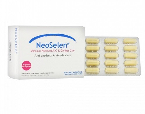 Description Sélénium, vitamines A, C, E, Omégas 3 et 6. Anti-oxydant, anti-radicallaire. Complément alimentaire. NeoSelen est un supplément nutritionnel d’antioxydants (sélénium, vitamines A, C, E), riche en Oméga 3 et Oméga 6. Bien connu pour ses propriétés antioxydantes, de nombreuses études cliniques ont prouvé l’efficacité de la combinaison de sélénium organique avec des vitamines A, C et E dans la protection des différents systèmes du corps contre le vieillissement cellulaire des tissus (articulations, des vaisseaux et la peau). De plus, les Omega 3 et Omega 6 exercent une action complémentaire, tous deux étant indispensables au bien-être de l’organisme. NeoSelen représente une nouvelle génération d’anti-oxydants. Ainsi, les extraits de poisson (oméga 3) permettent de renforcer les effets positifs du sélénium et des vitamines A, C et E dans leur rôle de protection des systèmes cardiovasculaire, articulaire et cérébral. Quant aux oméga-6, d’origine végétale (bourrache et onagre), ils renforcent l’action protectrice du sélénium et des vitamines A, C et E vis à vis de la fonction cutanée et aident à la protection contre le vieillissement prématuré des cellules. Cette combinaison synergique est le fruit des études les plus récentes sur l’alimentation et la santé. NeoSelen est ainsi tout particulièrement indiqué dans la lutte contre les effets nocifs et les excès de la vie moderne connus pour induire le vieillissement prématuré, tels que: – Nutrition déséquilibrée – Pollution – Stress – Exposition au soleil – Fumer et fumeurs Fabriqué en France. Conseils d’utilisation 1 gélule par jour de préférence au petit déjeuner pendant 3 mois. Complément alimentaire, ceci n’est pas un médicament. L’utilisation de ce complément alimentaire ne dispense pas d’un régime alimentaire varié. Tenir hors de portée des enfants. Ne pas dépasser la dose journalière recommandée. Composition Huile de poisson, acérola, acide ascorbique, huile de bourrache, huile d’onagrre, elvure de bière, vitamie E, vitamine A, selenium. Excipients : sirop de glucose, mannitol, caseinate, protéine de soja, stabilisant E450iii, lécithine, anti agglomérants E341iii, dioxide de silicium, stearate de sodium, arôme naturel, tocophérol, amidon modifié, anti-oxydants : palmytate d’ascorbyle et acide citrique-enveloppe : gélatine marine, dioxyde de titane. Composition pour 1 gélule : Levure de saccharomyces cerevisiae : 25mg dont délénium organique : 500µg Vitamine C : 60mg Vitamine A : 292µg Vitamine E : 10mg Huiel de poisson : 75mg dont EPA (oméga 3) : 9.75mg DHA (oméga 3) : 6mg Huile de bourrache poudre : 37mg dont GLA (oméga 6) : 2.73mg Huile d’onagre poudre : 25mg dont GLA (oméga 6) : 0.85mg